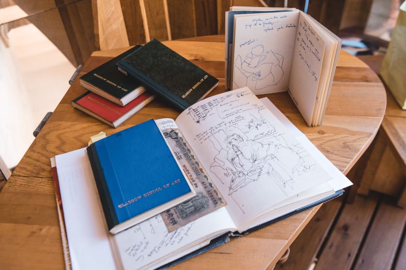 Enric llenó con su estilográfica de tinta azul unos cuadernos de dibujo de tapas duras de 10,5x15cm, además de tomar diapositivas para crear luego sus montajes panorámicos, mientras Elías rellenó a bolígrafo negro unos hartbound sketchbook de 14x21cm.