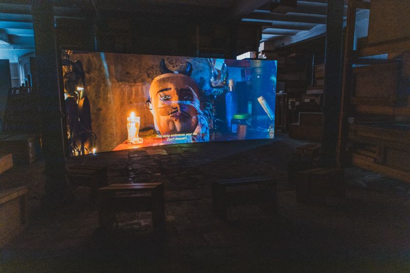 Filmada en 5K amb precisió cinemascope, la peça —realitzada juntament amb el cineasta Milton Guillén i acompanyada per la música de Susy Shock i Luigi Bridges— situa l’espectador en un territori liminal on allò cerimonial, polític i espiritual convergeixen. La seva presentació a Loop Festival es va realitzar sobre una pantalla corba, element fonamental per intensificar la immersió i accentuar el caràcter envoltant del ritu. En aquest format, la imatge abraça físicament l’espectador i activa un espai perceptiu que evoca la circularitat de les pràctiques rituals, el moviment del foc i la potència comunitària del gest.